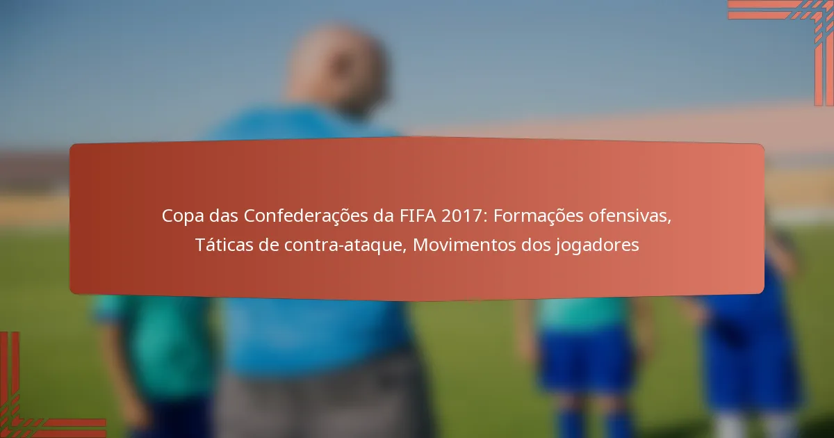 A Taça das Confederações da FIFA 2017 apresentou uma variedade de formações ofensivas, como 4-3-3, 3-5-2 e 4-2-3-1, cada uma oferecendo vantagens táticas únicas. As táticas de contra-ataque foram fundamentais, permitindo que as equipas capitalizassem sobre lapsos defensivos com rapidez e precisão. Além disso, os movimentos dos jogadores foram cruciais para melhorar a sinergia da equipa, à medida que os atletas ajustavam as suas posições e faziam corridas dinâmicas para criar oportunidades de golo.