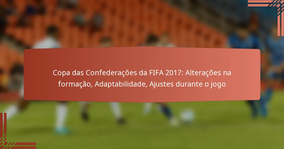 Durante a Taça das Confederações da FIFA 2017, as equipas mostraram uma adaptabilidade notável através da flexibilidade tática e mudanças de estratégia em tempo real. Os treinadores tomaram decisões cruciais que influenciaram o jogo, permitindo que os jogadores se ajustassem eficazmente às diversas condições de jogo e adversários.