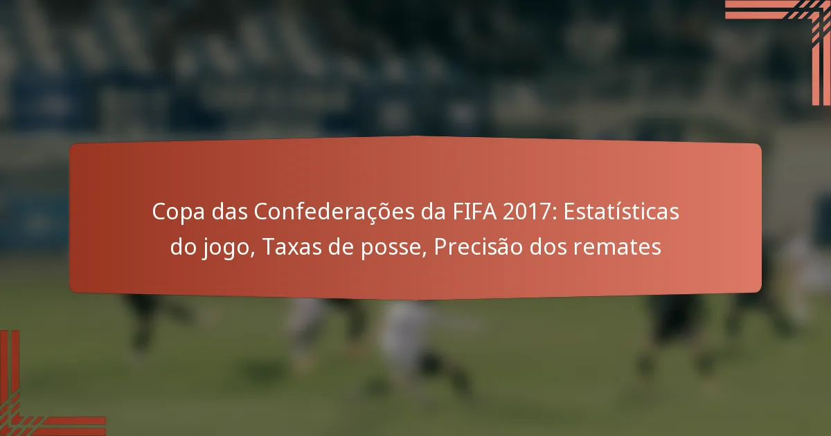 A Taça das Confederações da FIFA 2017 apresentou jogos emocionantes que forneceram informações valiosas através de estatísticas detalhadas dos jogos. Métricas-chave, como taxas de posse e precisão de remates, desempenharam um papel fundamental na determinação dos resultados, mostrando como as equipas utilizaram as suas forças e abordaram as suas fraquezas ao longo do torneio.