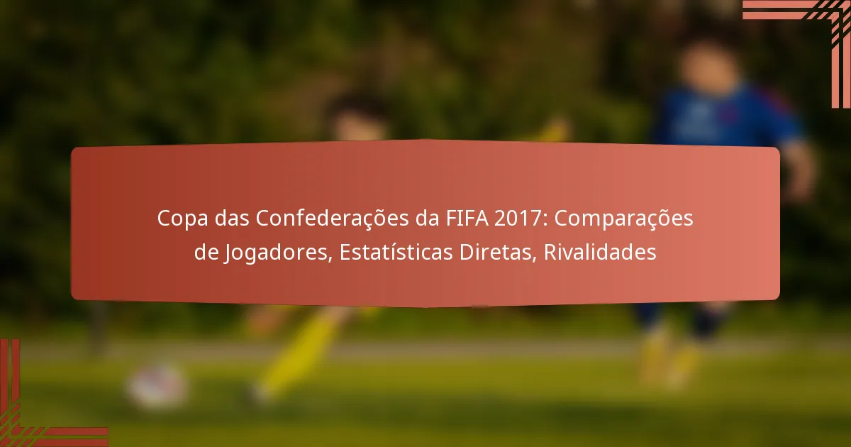 A Taça das Confederações da FIFA 2017 foi uma exibição emocionante de futebol internacional, com atuações de destaque e rivalidades intensas entre as melhores equipas. Os jogadores mostraram as suas habilidades através de estatísticas impressionantes, incluindo golos, assistências e contribuições defensivas, refletindo a natureza competitiva do torneio. Analisar estas comparações de jogadores oferece insights valiosos sobre a eficácia tática e o brilho individual que definiram o evento.