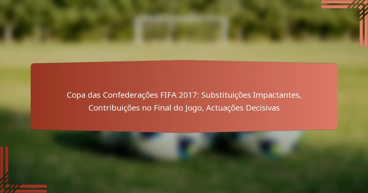 Vários jogadores destacaram-se durante a Taça das Confederações da FIFA 2017, influenciando significativamente as performances das suas equipas. As suas contribuições variaram desde marcar golos cruciais até fornecer liderança e versatilidade tática, tornando-os ativos inestimáveis em jogos de alto risco.