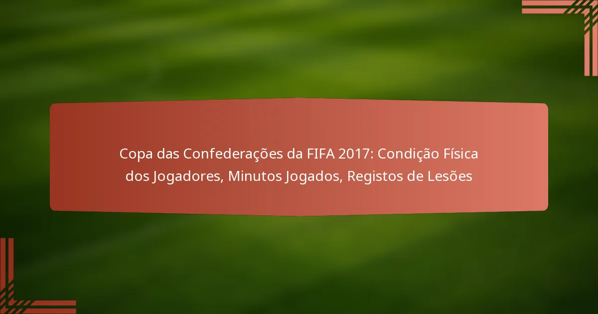 A Taça das Confederações da FIFA 2017 destacou a importância crítica da condição física dos jogadores, uma vez que afeta diretamente o desempenho e o risco de lesões. Jogadores-chave que passaram um tempo significativo em campo foram fundamentais para as estratégias das suas equipas, enquanto as lesões representaram desafios que influenciaram a profundidade e a eficácia do plantel ao longo do torneio.