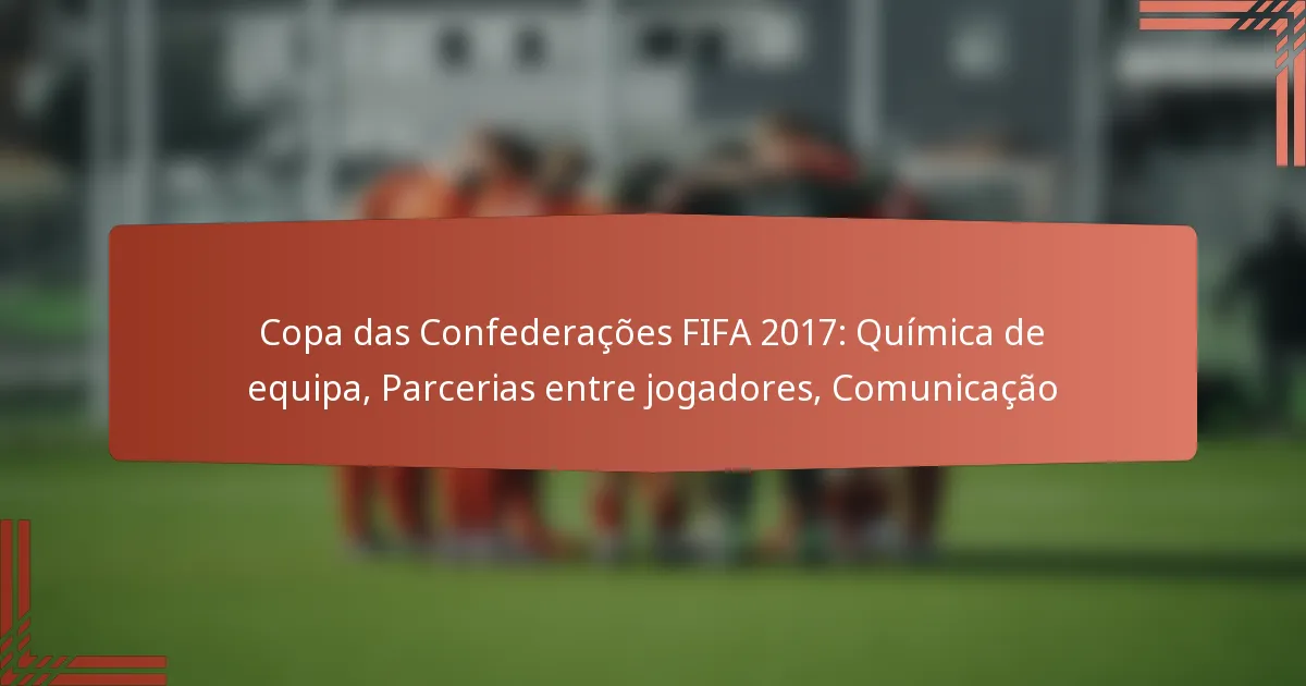 A Taça das Confederações da FIFA 2017 destacou a importância da química de equipa, onde fortes relações interpessoais entre os jogadores influenciaram significativamente o seu desempenho em campo. Parcerias eficazes entre jogadores e uma comunicação clara foram vitais, permitindo que as equipas antecipassem movimentos e executassem estratégias com precisão. Esta sinergia não só melhorou a coordenação, mas também fomentou a confiança, aumentando, em última análise, o sucesso geral das equipas envolvidas.